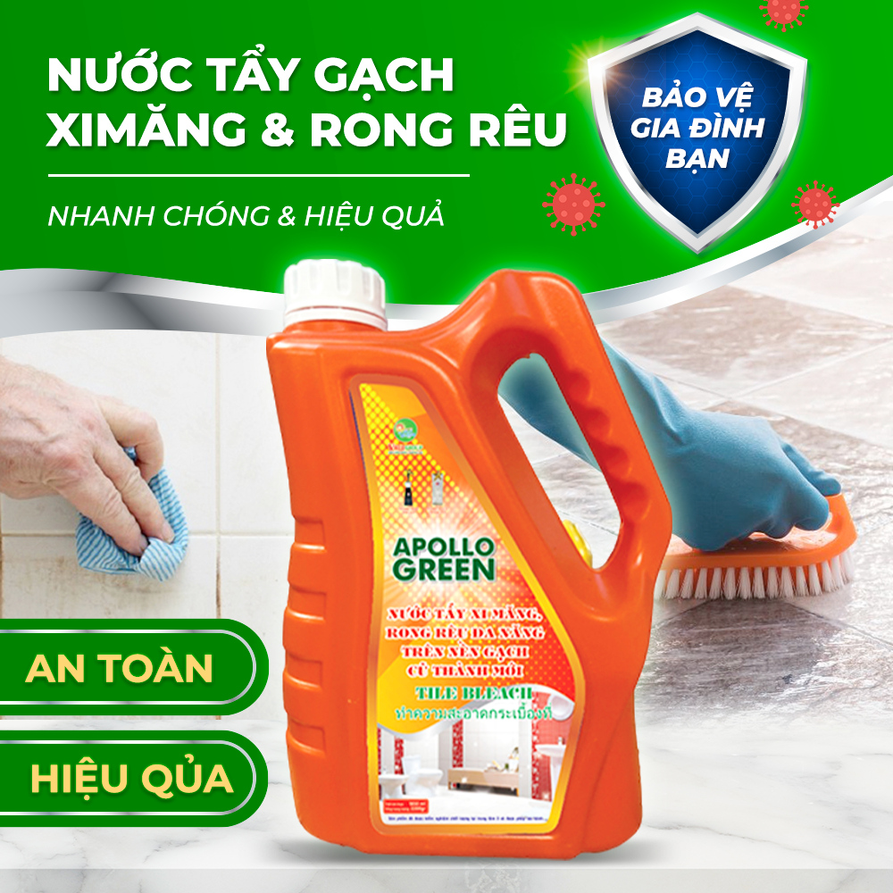 APOLLO GREEN \- Giải pháp hoàn hảo cho mọi nhu cầu tẩy xi măng rong rêu. Sản phẩm đa năng này giúp bạn loại bỏ xi măng dư thừa một cách hiệu quả.